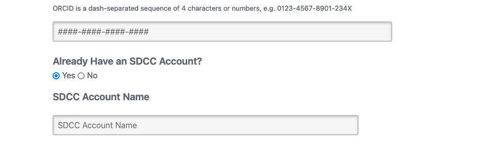 If you have an existing SDCC Account, please select the "Yes" button and enter your SDCC username. This will help us map your federated login to this existing account.