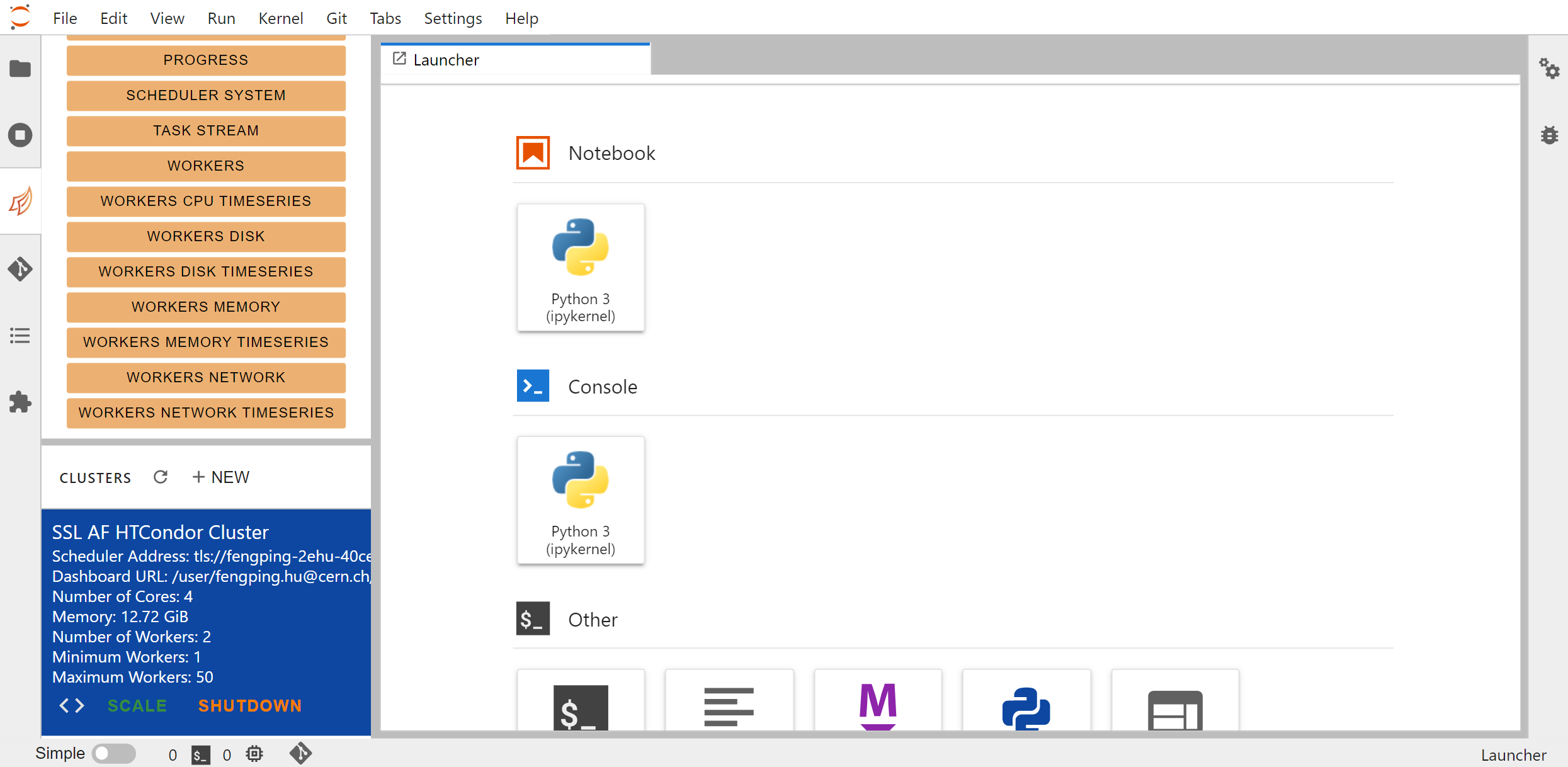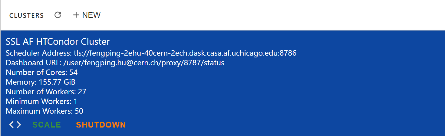 As soon as you will start your computations, you will notice that available resources at the Coffea-Casa Analysis Facility @ UChicago can easily autoscale depending on available resources in the HTCondor pool at AF UChicago.